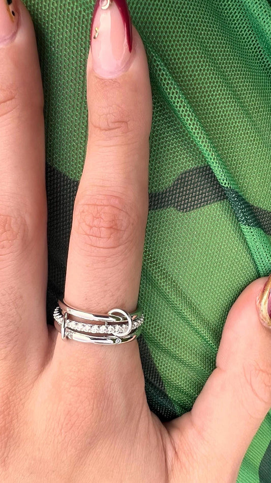 Multi band rings,3 interlocking silver bands ring silver stackable band triple layered loop ring,multi link connected ring,stacking ring
