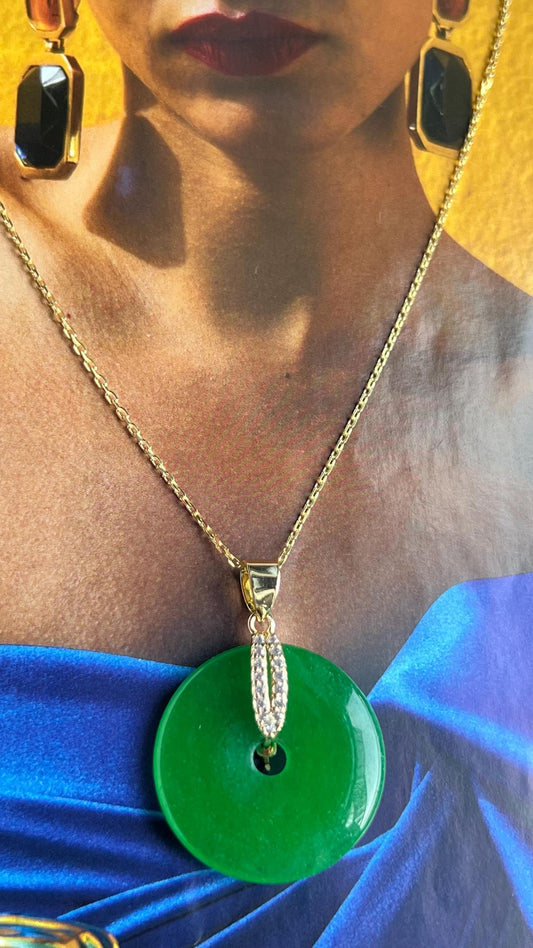 Jade Green Donut pendant necklace Lucky jewelry spiritual jewelry Jade Lover Jade circle pendant Gold Jade circle necklace Protection jewel