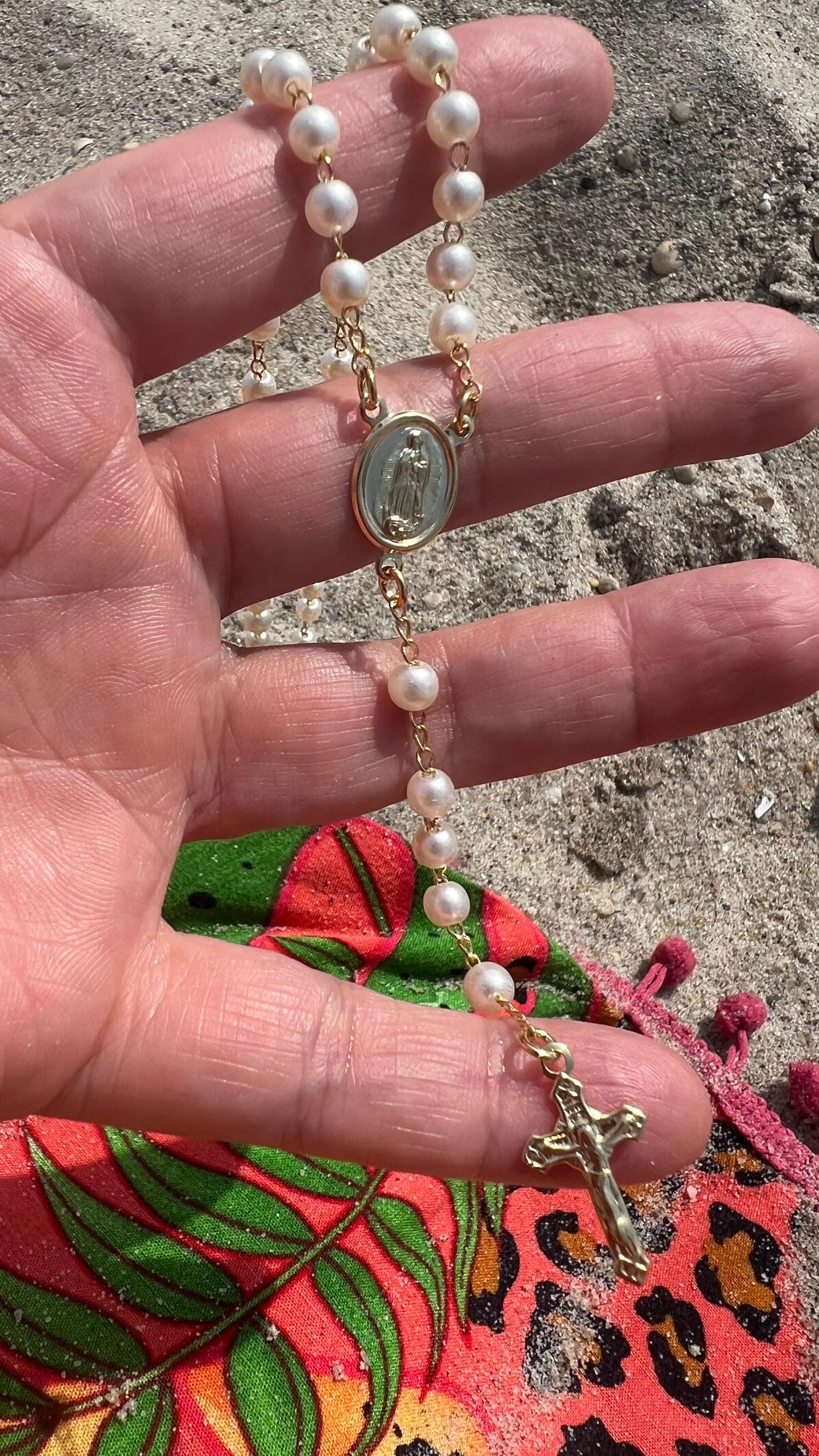 18k Gold Filled Pearl Rosary Necklace: Dainty Catholic Jewelry , Religious Jewelry