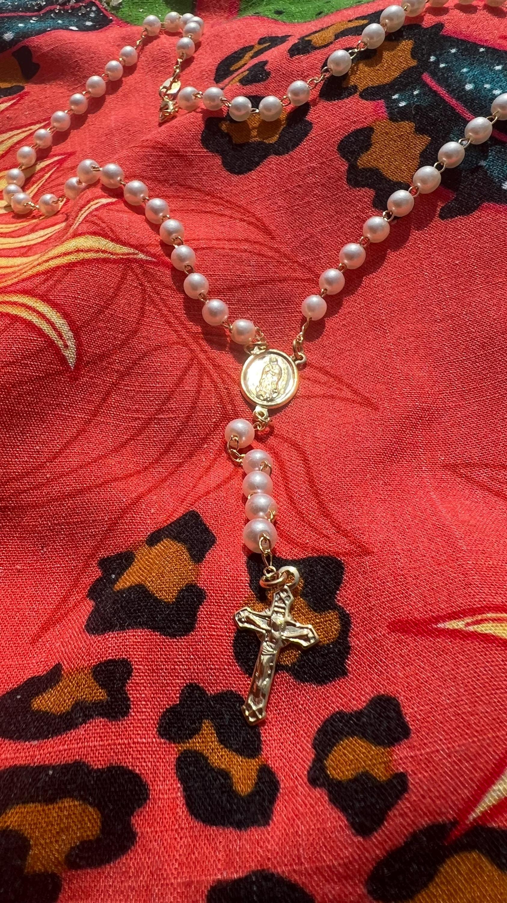 This 18K gold filled beaded pearl rosary necklace from Jewelrybyanashop is more than just jewelry — it’s a symbol of faith, beauty, and devotion. Handcrafted with care, each delicate pearl bead leads to a stunning Virgin Mary centerpiece and crucifix, making it perfect for daily prayer, gifting, or elegant wear.