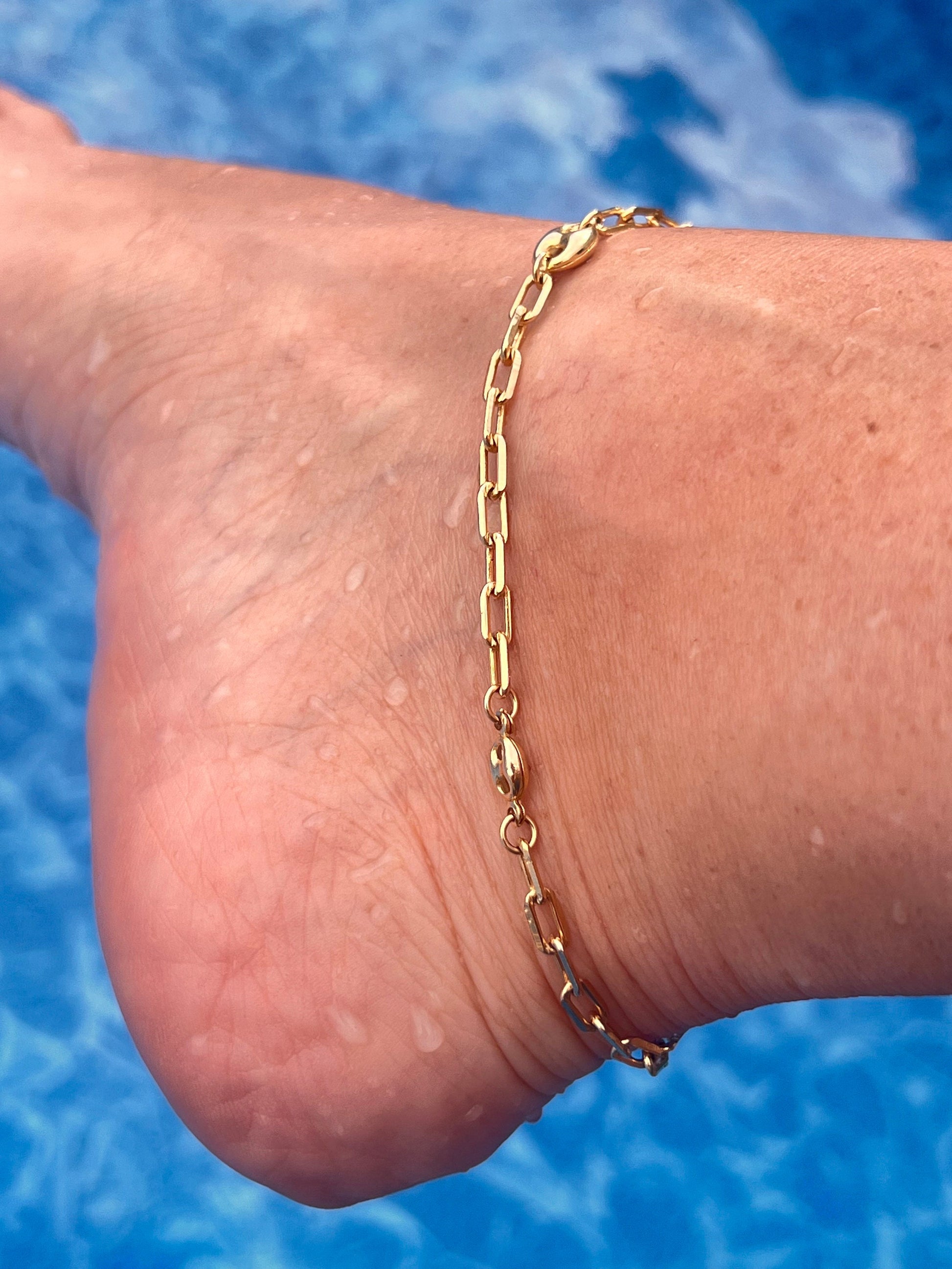 Elevate your summer style with our Gold-Filled Mariner Link Ankle Bracelet, a must-have accessory for the season! This elegant ankle bracelet combines classic design with a trendy twist, making it perfect for beach days, summer nights, and everything in between. Crafted with high-quality gold-filled material, this piece offers the luxury look of gold without the hefty price tag.
