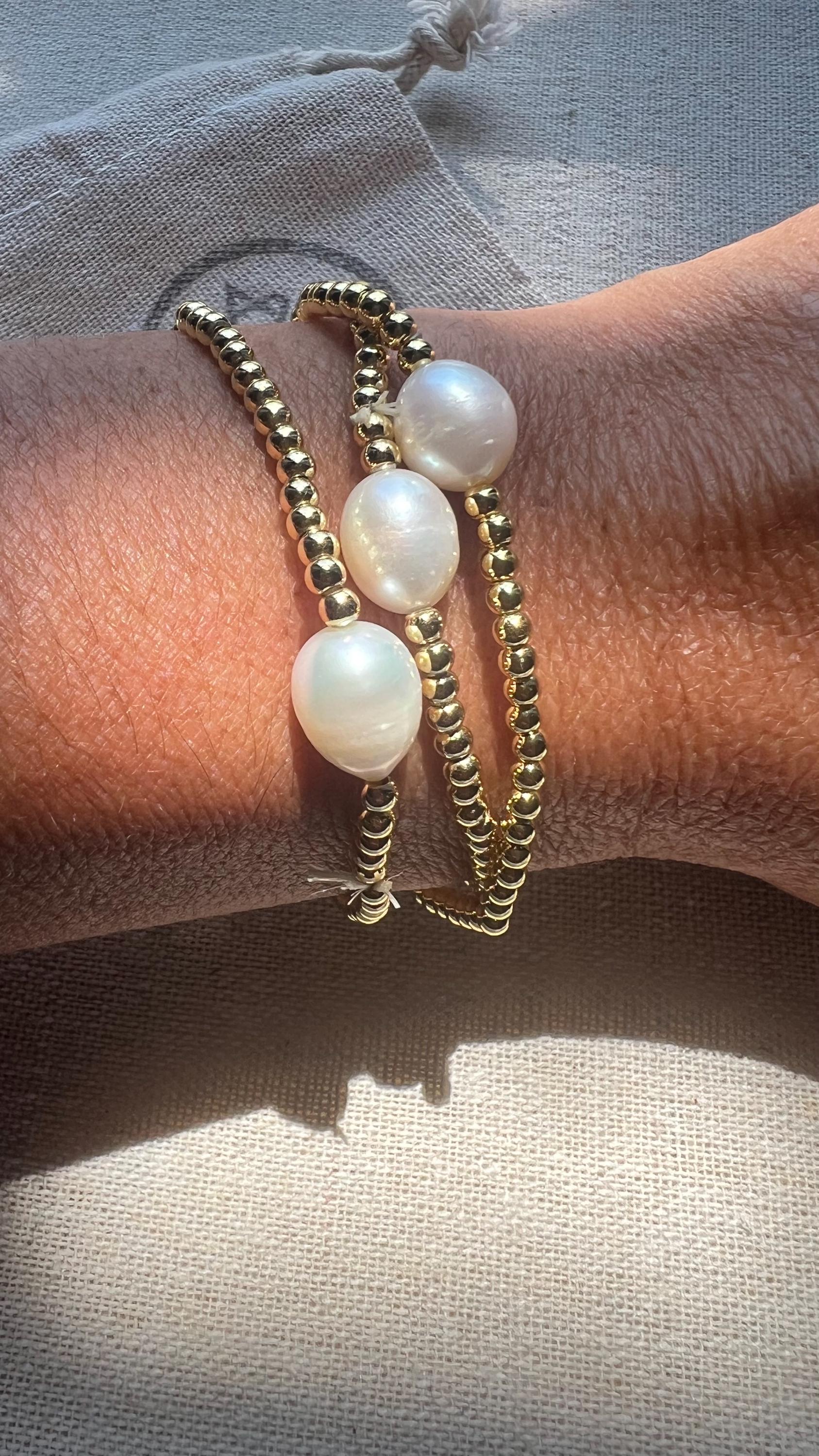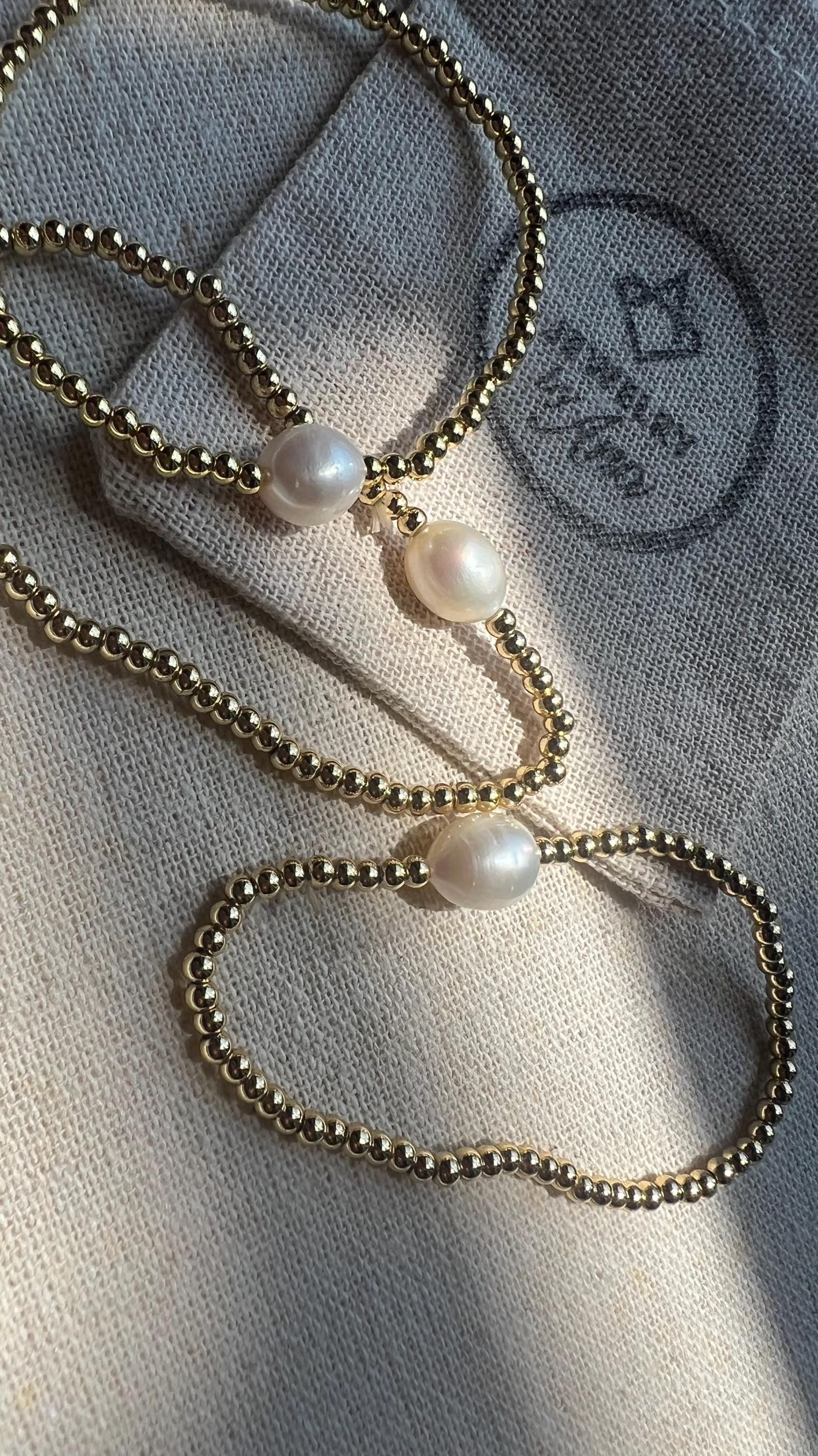 Elevate your arm candy with this gorgeous gold-filled over Brass elastic Freshwater pearl beaded bracelet — designed to shine solo or stack like a pro! The minimalist stretch design makes it easy to slip on and off while maintaining a chic, polished look. Whether you’re dressing up or keeping it casual, this piece is your new go-to bracelet for effortless style.