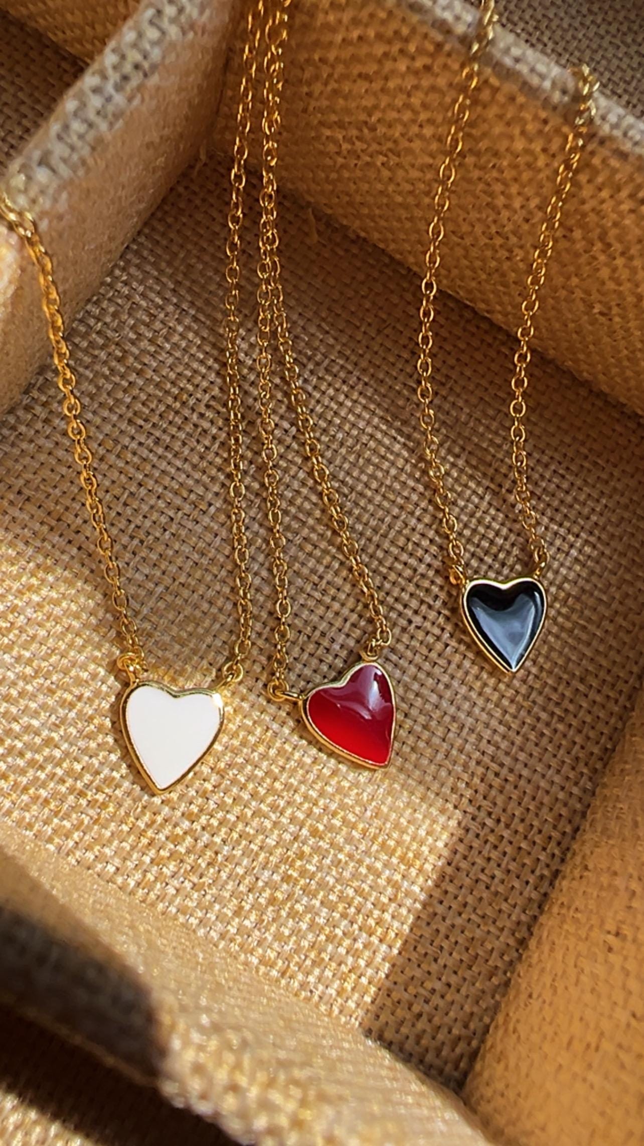 925 Sterling Silver 14 Kt Gold plated enamel heart shaped adjustable necklace.