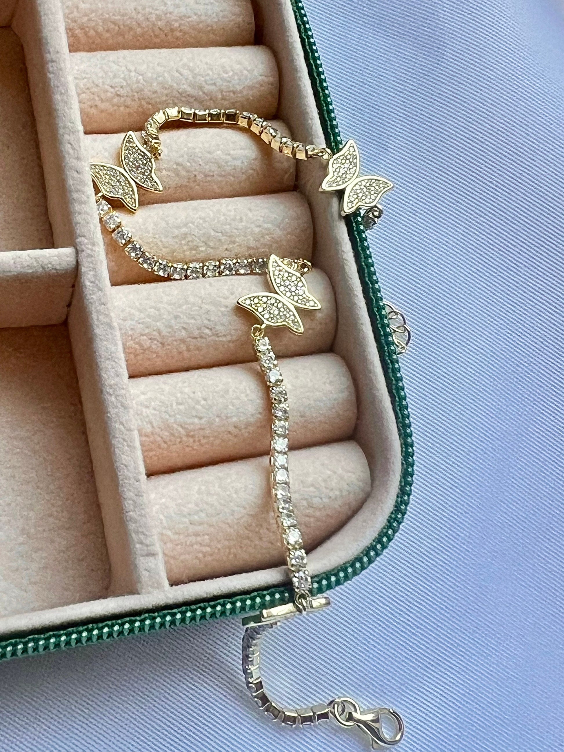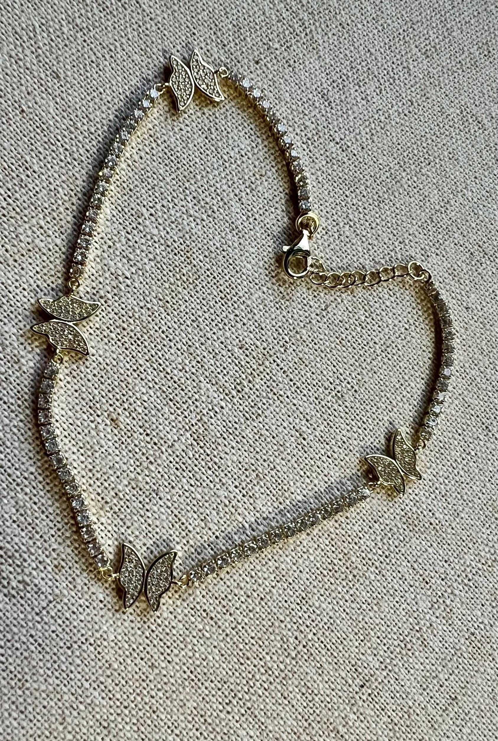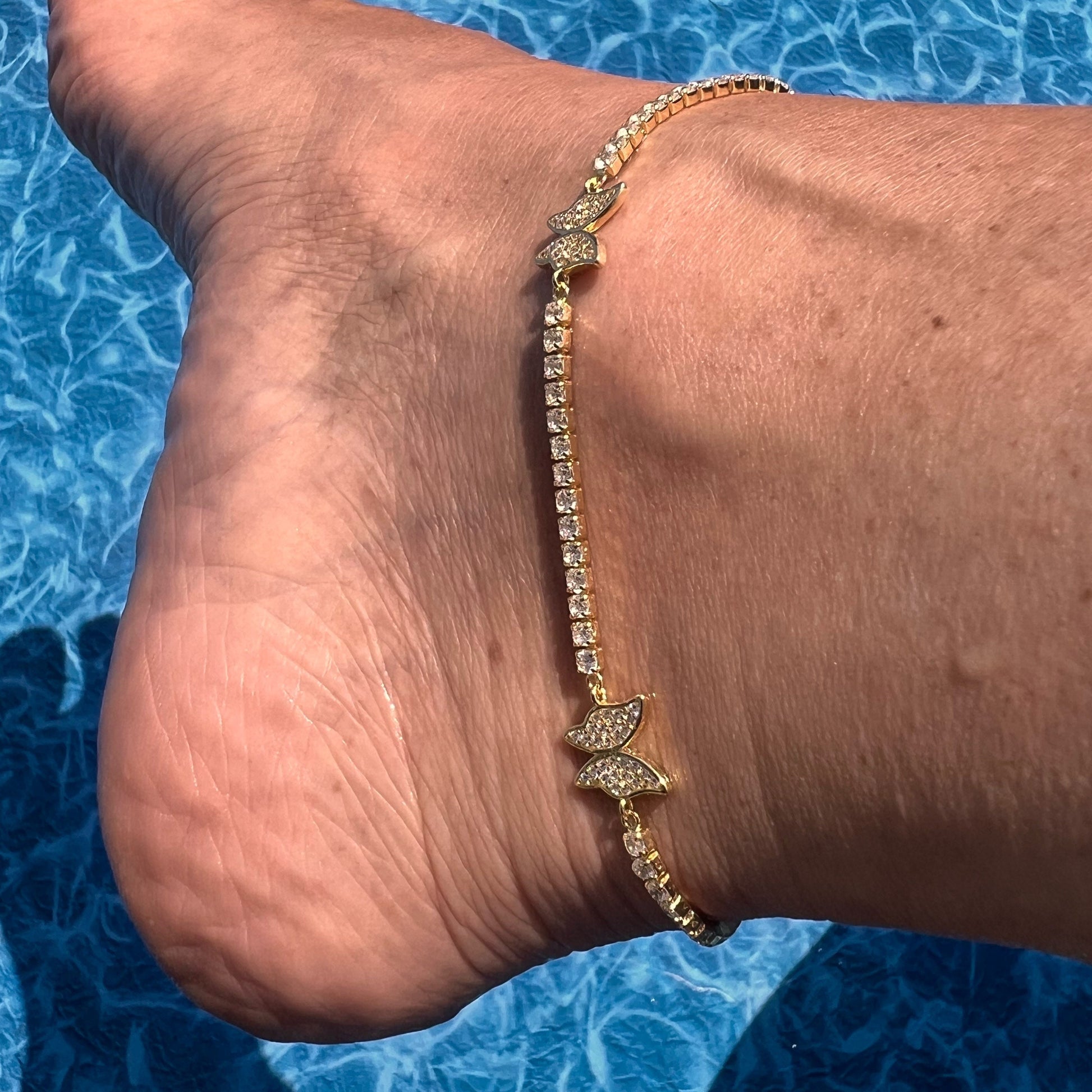 Gold-Plated Butterfly Tennis Ankle Bracelet with Cubic Zirconia