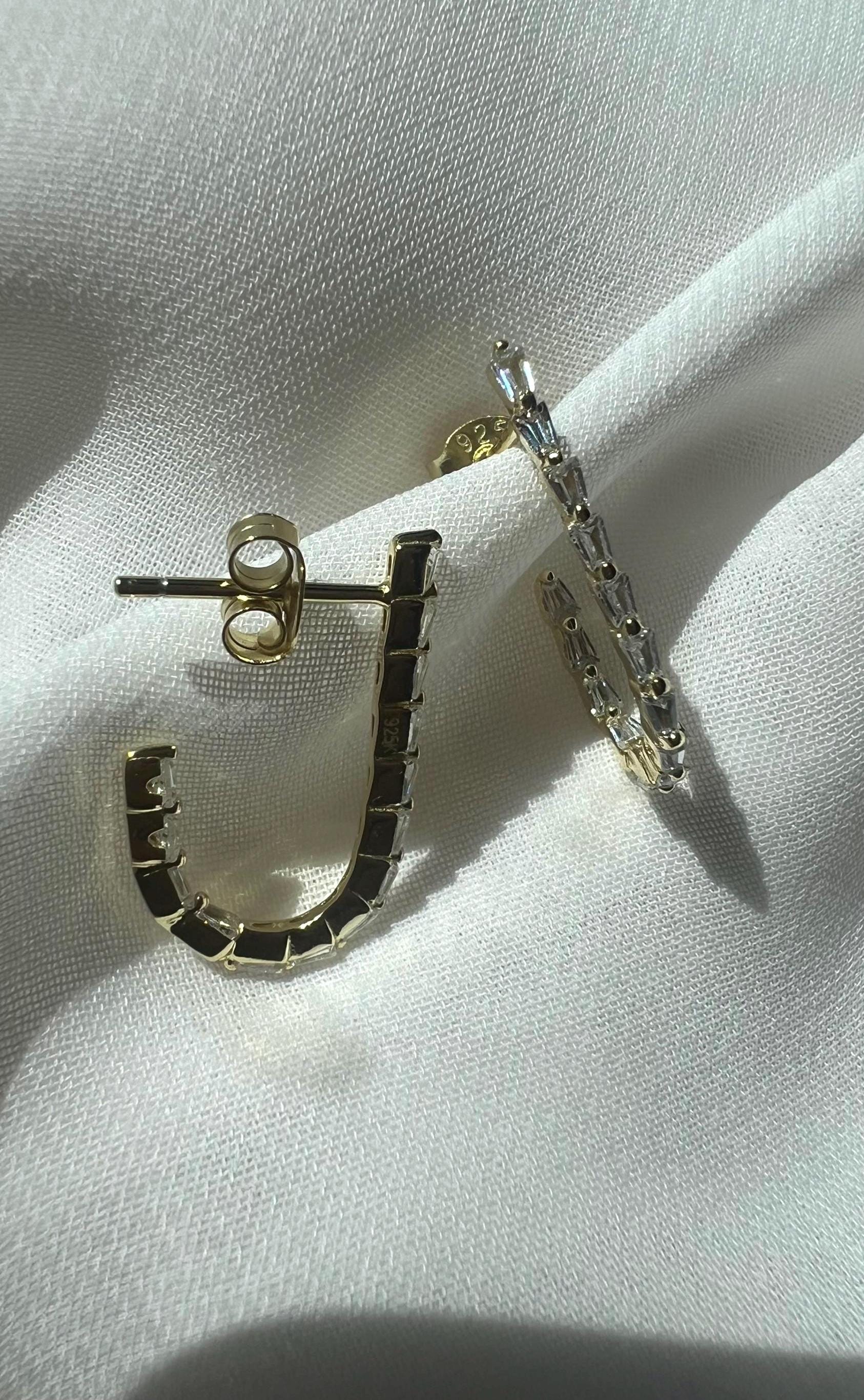 Gold Plated CZ Hoop Earrings: 14K Sterling Silver Huggies