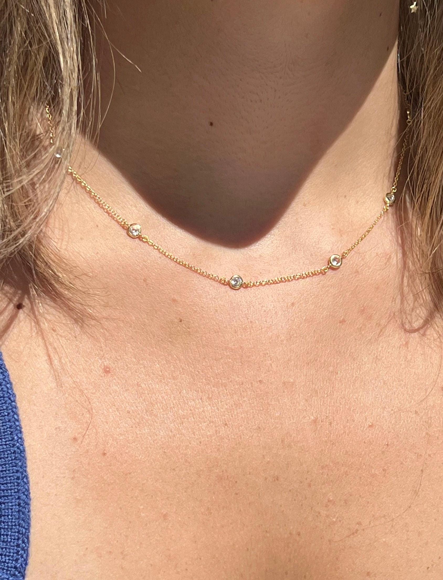 Gold Plated CZ Station Necklace: Dainty Layering Chain,Stackable Necklace,Minimalist Jewelry,Wedding