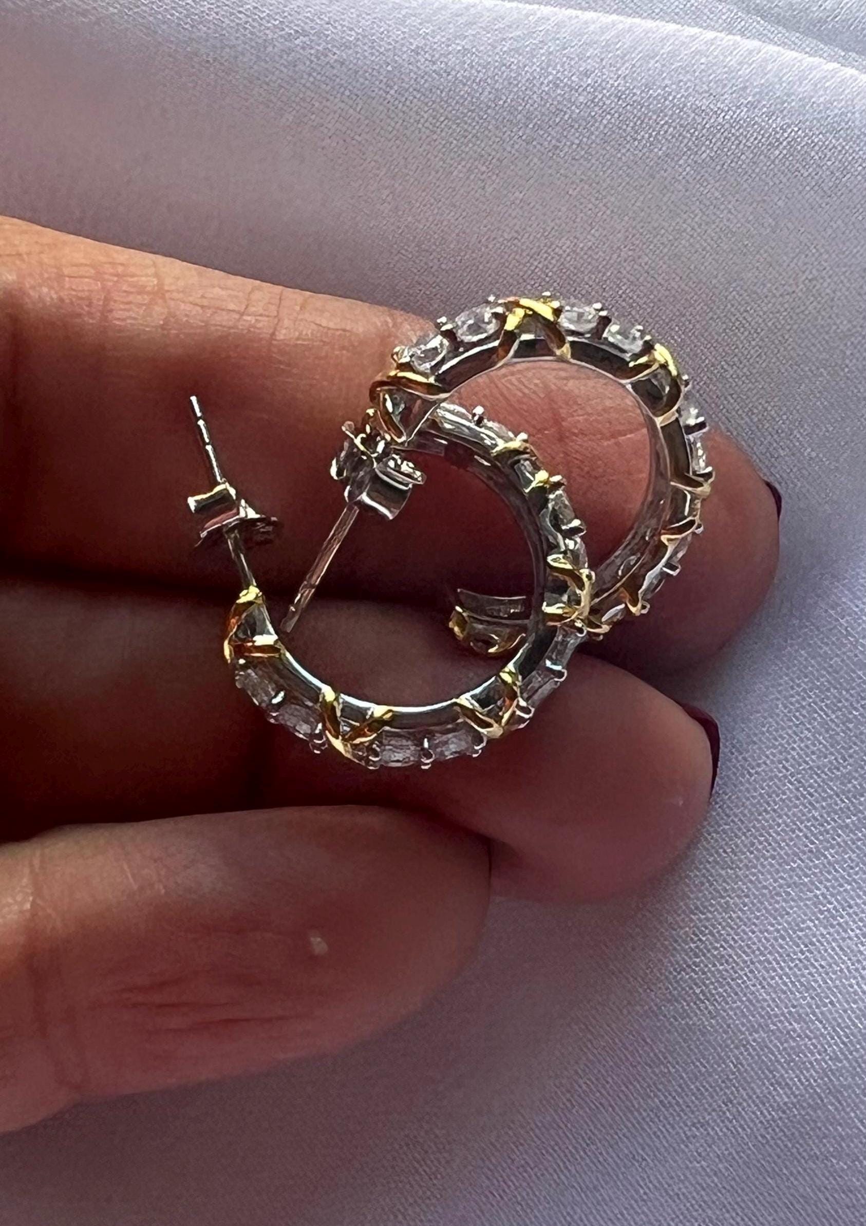 Gold Plated Sterling Silver Open Hoop Earrings: Dainty CZ Hoops ,Elegant Earrings ,Everyday Jewelry